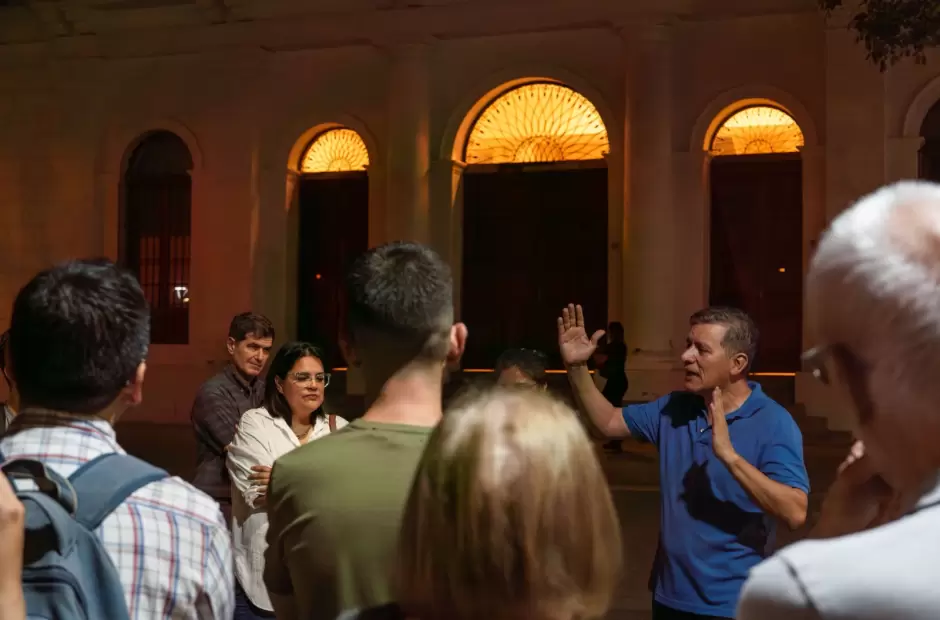 La noche del viernes estuvo misteriosa en el caso céntrico de la ciudad Capital por la realización del primer encuentro del ciclo de paseos patrimoniales "Pasos con historia", que comenzó su temporada 2025 con relatos y leyendas de la plaza 25 de Mayo.