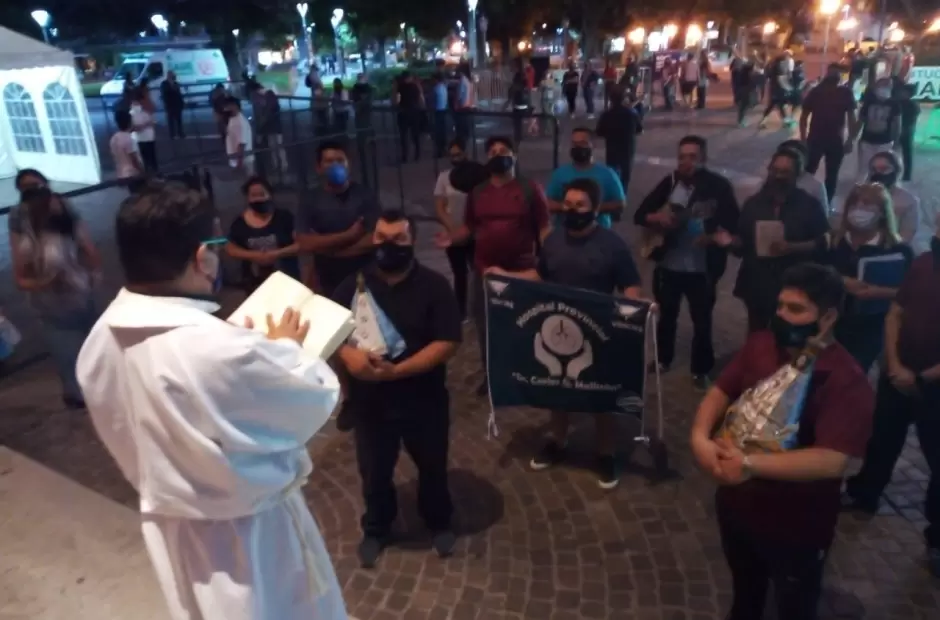 Al llegar al Paseo de la Fe, alrededor de las 21.00, fueron recibidos por el Rector del Santuario y Catedral Basílica, Pbro. Gustavo Flores, quien les agradeció especialmente por la tarea que realizan en la lucha contra la pandemia en este año; luego leyó la Palabra de Dios y les impartió una bendición especial.