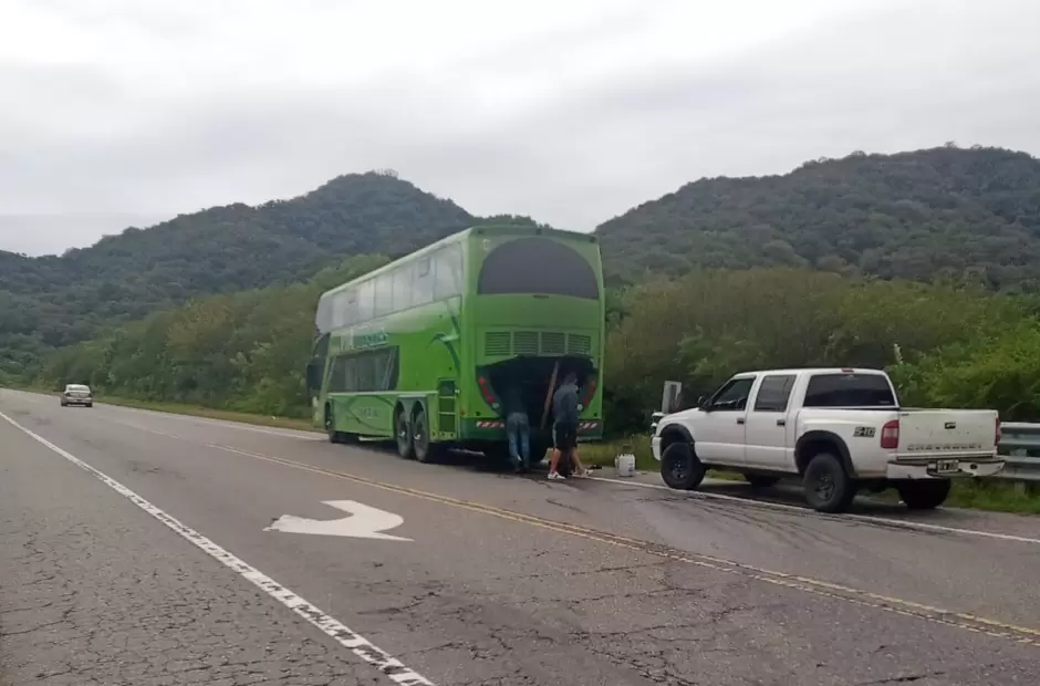 Piden transitar con precaución por RN 38 por ómnibus detenido en borde de calzada