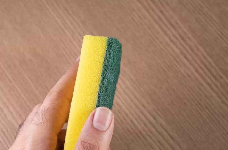 - Usar la esponja de forma incorrecta puede dañar la vajilla. Por ejemplo, frotar el lado verde en una sartén antiadherente puede deteriorar el recubrimiento, haciendo que pierda su capacidad de cocinar sin pegarse.