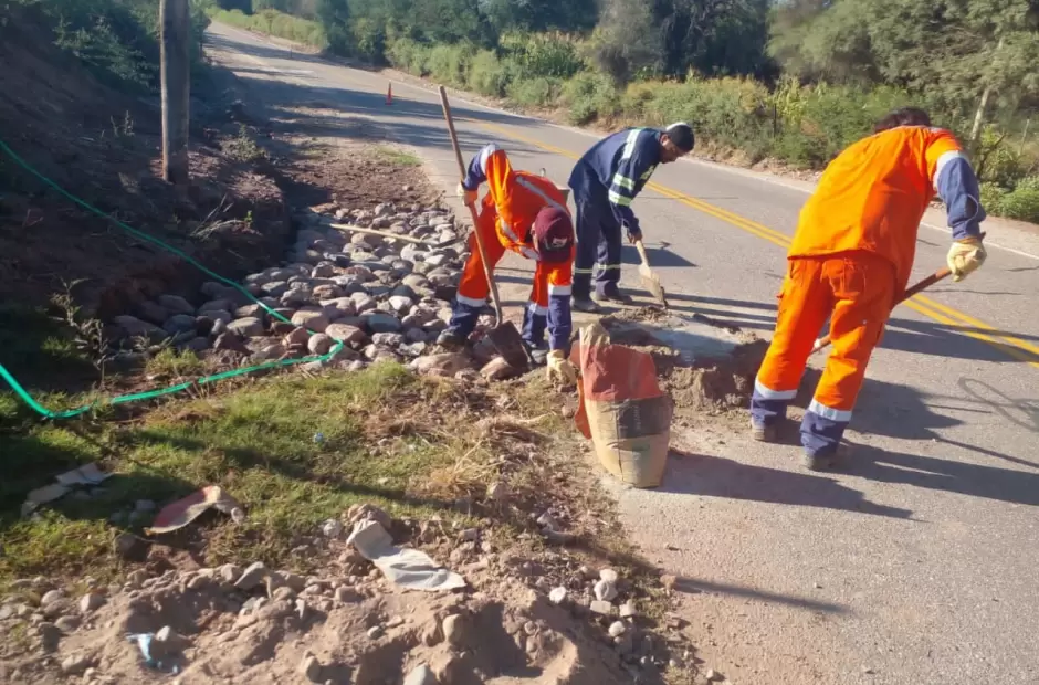 Desde el organismo nacional informaron que personal y equipos realizan trabajos de revestimiento de cunetas.