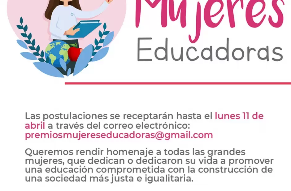 El Ministerio de Educación a cargo de Andrea Centurión, informa que hoy cierra la convocatoria para recibir postulaciones de mujeres que promovieron acciones por y para la educación de Catamarca. La ganadora de "Mujeres Educadoras 2022", recibirá una notebook como premio.
