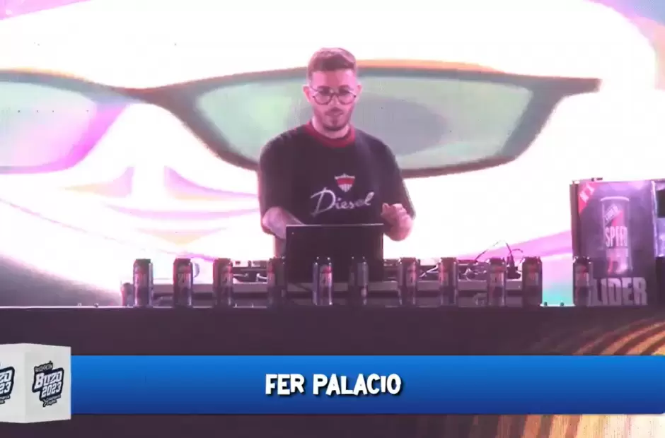 Pasadas las 21 horas, una nube de humo cubrió el escenario, y la expectativa llegó a su punto máximo. En lo alto, Fer Palacio estaba frente a su consola, ante la mirada de un lugar repleto, y grabado en cada movimiento por cientos de celulares. “Ferpa” mezcló las canciones del momento, con su estilo relajado, bailando cada tema, e incluyendo complicidades como mundialistas.