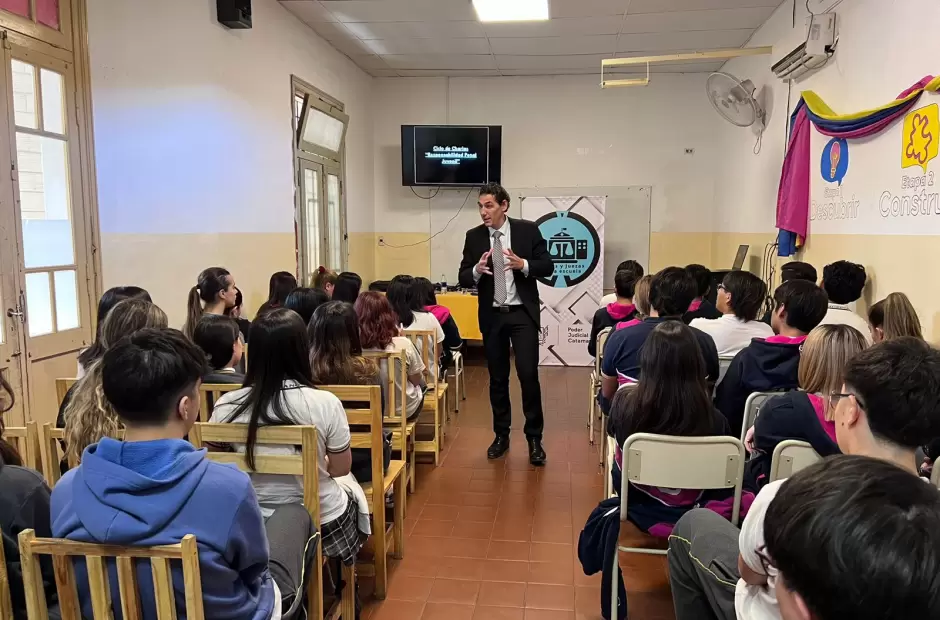 Este programa lleva el nombre de “Jueces y Juezas en la Escuela”, y durante el pasado lunes y este miércoles fue el turno del Dr. Fabricio Iván Gershani Quesada, Juez Penal Juvenil, quien disertó sobre la responsabilidad de los jovenes sometidos a su competencia y de la Dra.Sandra Lopez Gardel, Asesora de Menores de Primera Nominación, que les habló a los alumnos y alumnas de los últimos años del Colegio Belgrano sobre sus derechos y sobre la capacidad de ejercicio de los mismos.