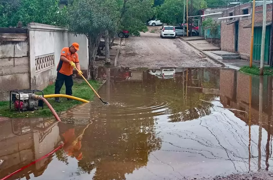 Asimismo, se llevaron a cabo intervenciones en diferentes barrios de la ciudad Capital, donde la gran cantidad de agua caída generó dificultades en el tránsito tanto de peatones como de vehículos. En particular, se realizaron tareas de desagote en los badenes del B° Villa Parque Chacabuco y se mantienen controles constantes en sectores críticos como Valle Chico, el Predio Ferial y Miraflores.