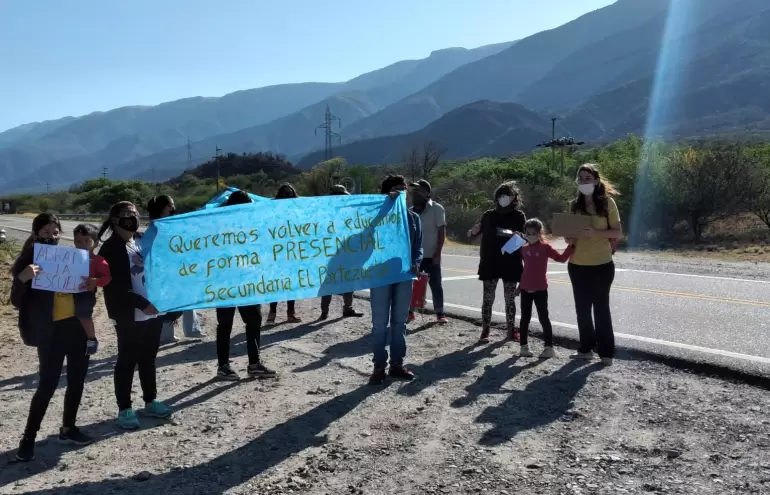 A la vera de la Ruta nacional nº 38 se manifestaron hoy padres de alumnos de la Escuela Secundaria anexo n° 70 y personal de la comunidad educativa de la Villa de Santa Cruz y de Huaycama.