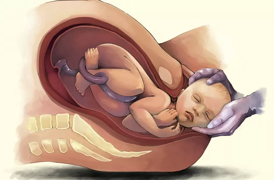 - Aplicar una tracción firme y continua hacia abajo sobre la cabeza fetal para mover el hombro que está en situación anterior debajo de la sínfisis del pubis. En ningún caso se debe realizar una tracción excesiva sobre la cabeza, pues esta práctica podría producir una lesión en los plexos braquiales