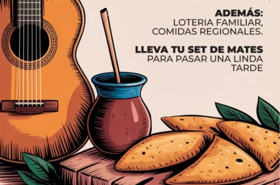 Padres y alumnos invitan a compartir una jornada con lotería familiar, comidas regionales y musica de la mano de artistas invitados como Juan Alvarez, Los Huincas, Los Miranda, El Chango de Santa Cruz, Silvestre Ogas, y los Valientes del Chamamè.