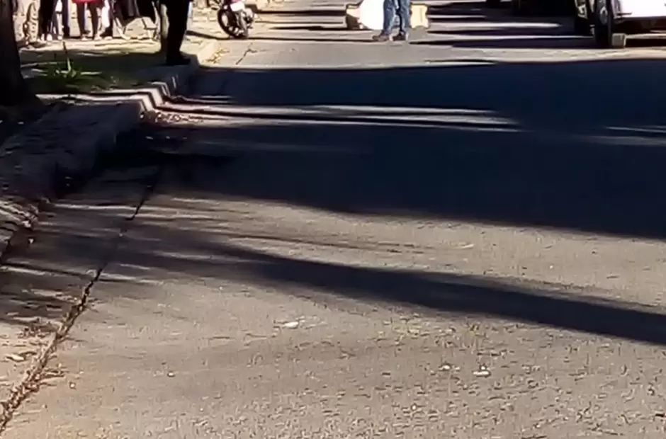 En la intersección de Rivadavia y Pérez de Zurita, frente a la Municipalidad, un grupo de, aproximadamente 20 personas, cortó la calle bloqueando la salida de vehículo.