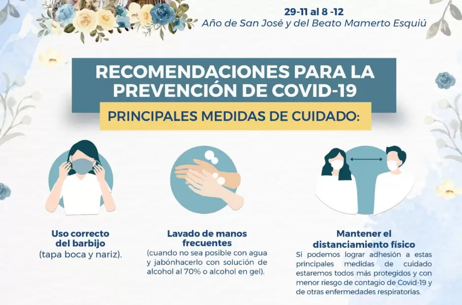 - El Ministerio de Salud se encargará de proporcionar barbijos para los fieles que asistan a las celebraciones, especialmente cuando haya mayor cantidad de personas.