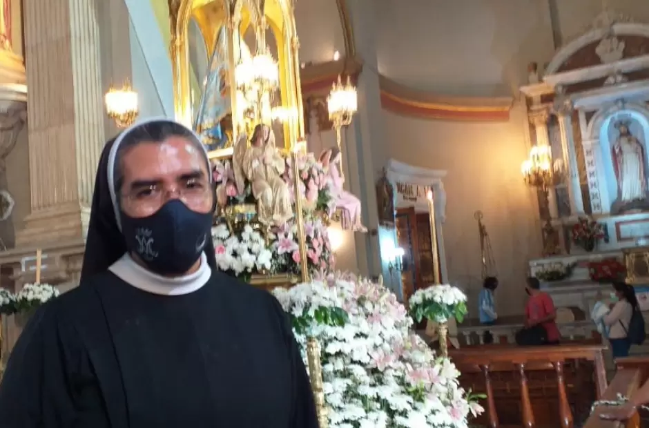 “En este sexto día de la novena, cuyo tema es 'Cruzar el umbral para compartir y servir', en el que hacemos este homenaje a la vida religiosa especialmente de Catamarca, tenemos la felicidad de que una hermana de la Congregación Hijas de María Santísima del Huerto, la hermana Mary Penayo, de Paraguay, que es formadora, hoy celebra sus Bodas de Plata de Consagración a Dios, y lo hace a los pies de nuestra Madre del Valle. También un grupo de hermanas del Huerto ha venido a misionar y servir en la Gruta de la Virgen del Valle: las hermanas Sandra, Andrea, Ana María, Mónica; Mirna (novicia) y Priscila (postulante)”.