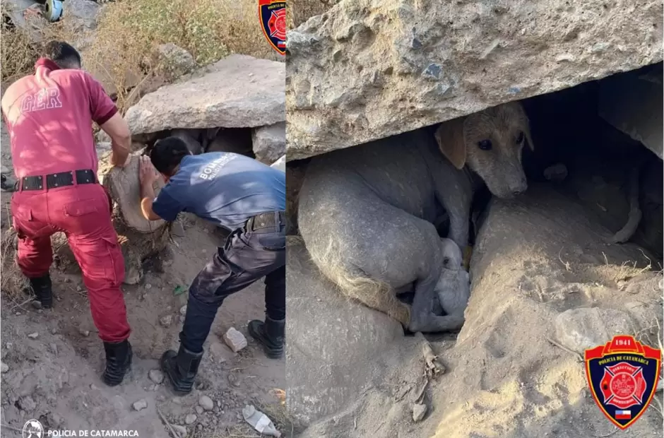 Rescataron a una perra y a sus cachorros atrapados entre los escombros