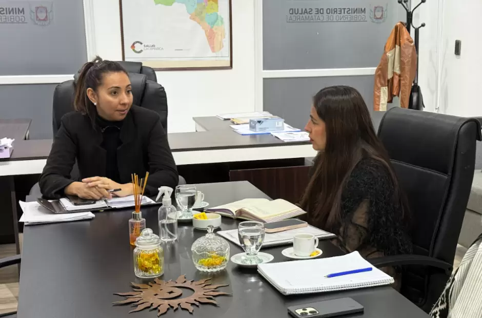 La ministra de Salud de la provincia, Johana Carrizo, recibió a la senadora por el departamento Paclín, Virginia Del Arco, con quien dialogó sobre las necesidades y problemáticas de salud del departamento.