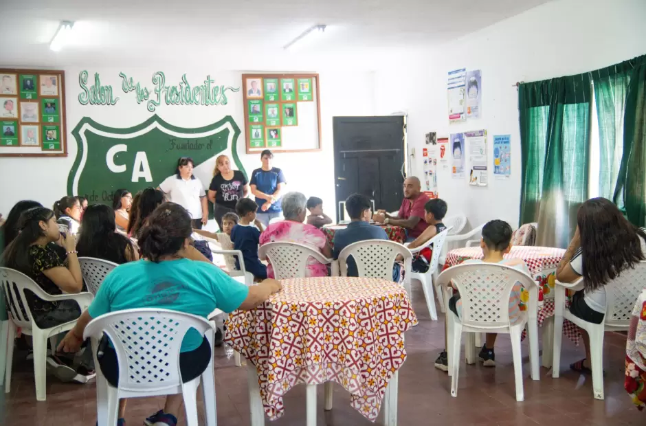 La convocatoria reunió a niños, niñas y adolescentes que asistieron acompañados por sus padres, madres o tutores. También participaron miembros del Merendero y Ropero comunitario del club, quienes trabajan diariamente en el acompañamiento social de las familias de la zona. La presencia de referentes comunitarios permitió fortalecer el diálogo entre el sistema de salud y los espacios barriales, potenciando el alcance de los mensajes preventivos.