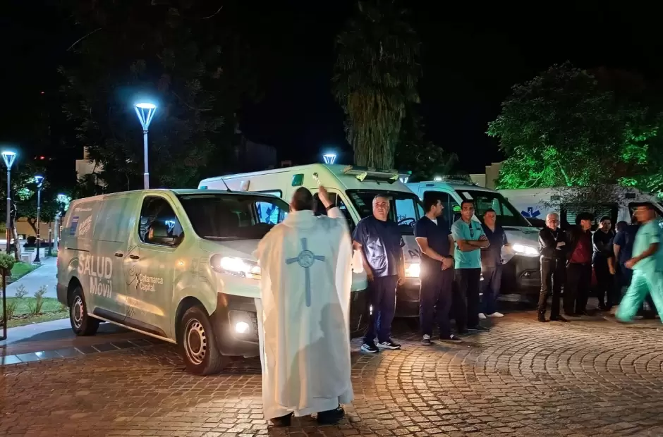Una vez concluida la celebración eucarística, fueron bendecidos los móviles sanitarios que sirven para el traslado de los pacientes, apostados en el Paseo de la Fe.