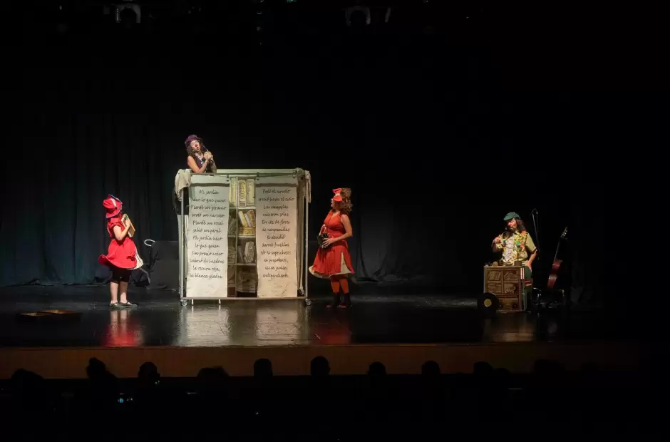 Tras el despliegue artístico en las calles del casco céntrico, pasadas las 20 hs arrancó la función inaugural de la Fiesta del Teatro con la presentación de la obra “Libros en la Mira”, del grupo cordobés Tres Tristes Tigres en la sala Julio Sánchez Gardel del Cine Teatro Catamarca, a la que asistió la comunidad teatral catamarqueña, estudiantes, adultos mayores del CIIC y público en general.