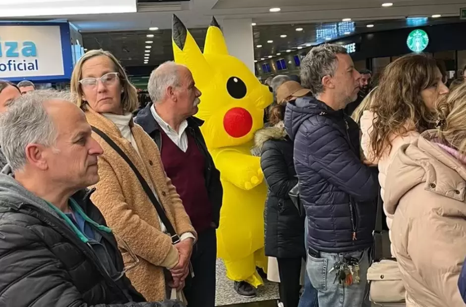 El día de ayer lunes por la noche, en la terminal A del aeropuerto de Ezeiza, en la zona de arribos internacionales, apareció un joven con un gigantesco disfraz de Pikachu, el fiel compañero de Ash en la mítica serie Pokémon.