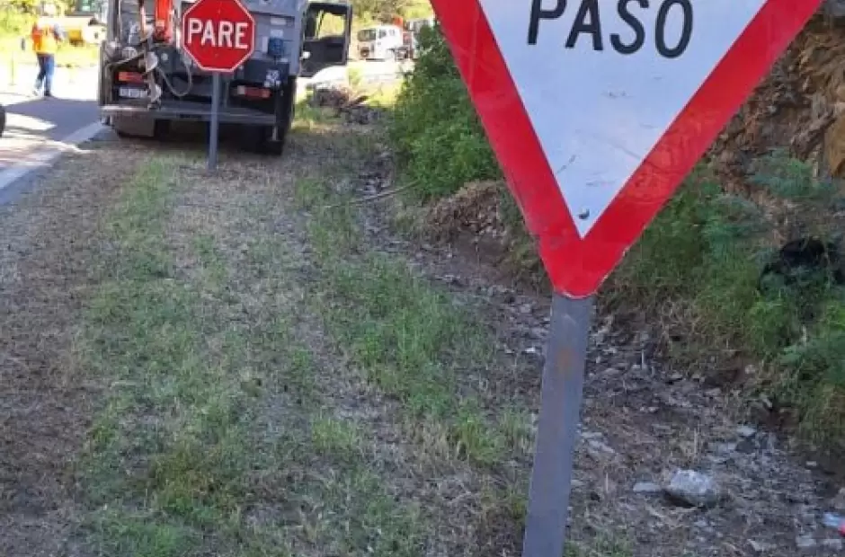 Con precaución en el Kilómetro 1.140 por presencia de personal y equipos de la DNV trabando en relleno de erosiones en banquinas.