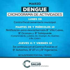 Finalmente, Las brigadas de la Dirección Provincial de Vectores y la Municipalidad de la Capital realizarán control focal y descacharrado, de 08 a 13 horas.