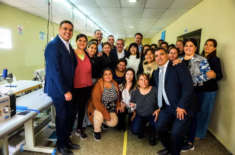 Luego de la firma, el gobernador Jalil, junto al intendente Barot y al ministro Caria, saludaron a las talleristas y les desearon éxito en esta primera instancia de instrucción que se realizará en 4 meses abordándose temas como la confección industrial, moldería industrial, mantenimiento de máquinas de coser industriales y familiares y administración, entre otros puntos.