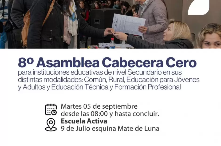 Se realizará la 8º Asamblea Cabecera Cero para el Nivel Secundario en sus distintas modalidades