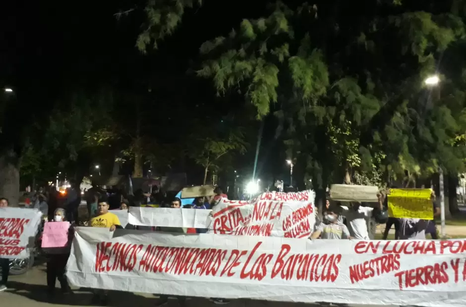 Hoy a las 19 horas, vecinos de la localidad de Las Barrancas, realizaron una marcha frente a la Unidad Regional N° de Belén para protestar contra la expropiación del Campo Comunero realizada por José Normando Figueroa, actual intendente de San Fernando.