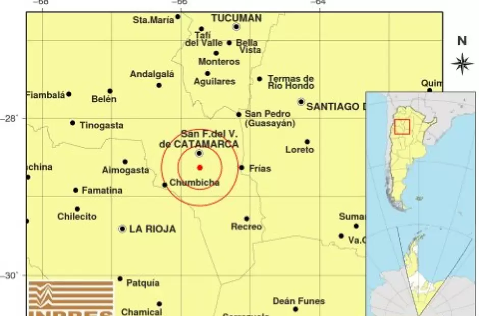 El epicentro está ubicado a 20 kilómetros al sur de San Fernando del Valle De Catamarca y a 55 kilómetros al noreste de Chumbicha. Su profundidad fue de 6 kilómetros.