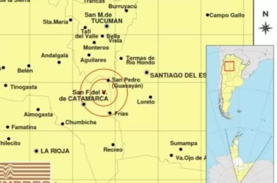 Según los datos proporcionados por el organismo, tuvo epicentro a las: 53 km al NE de San Fernando del Valle de Catamarca y a 31 km al Sur de San Pedro.