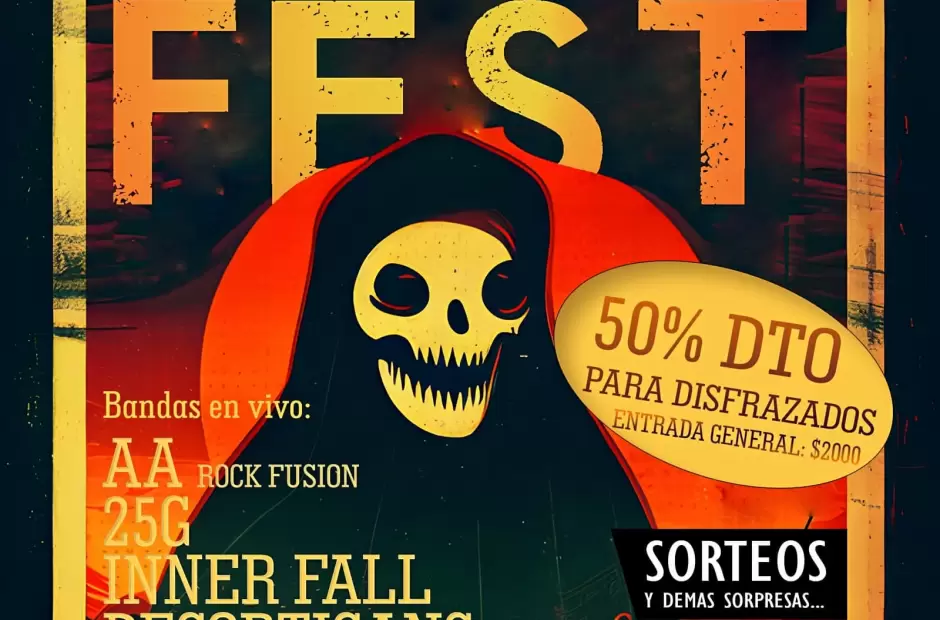 Este viernes 27 de octubre a partir de las 22:30 hs se llevará a cabo el Halloween Fest, organizado por la banda de rock alternativo InnerFall. El lugar de encuentro será en La Osera – Casa cultural (Barrio El Milagro, Calles Ambato y Piedra Blanca), contará con la presentación en vivo de la ya nombrada InnerFall acompañados por los debutantes Doble A (AA), la banda de rock clásico 25g y desde Andalgalá, Decorticans.