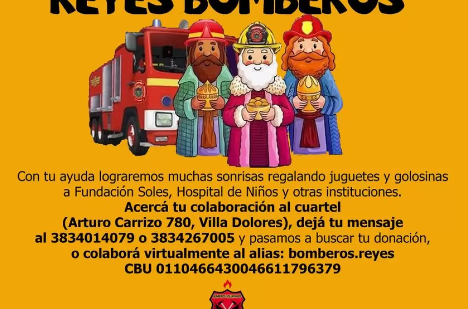 La otra opción es colaborar con una transferencia y para esto el alias es: bomberos.reyes / CBU 0110466430046611796379