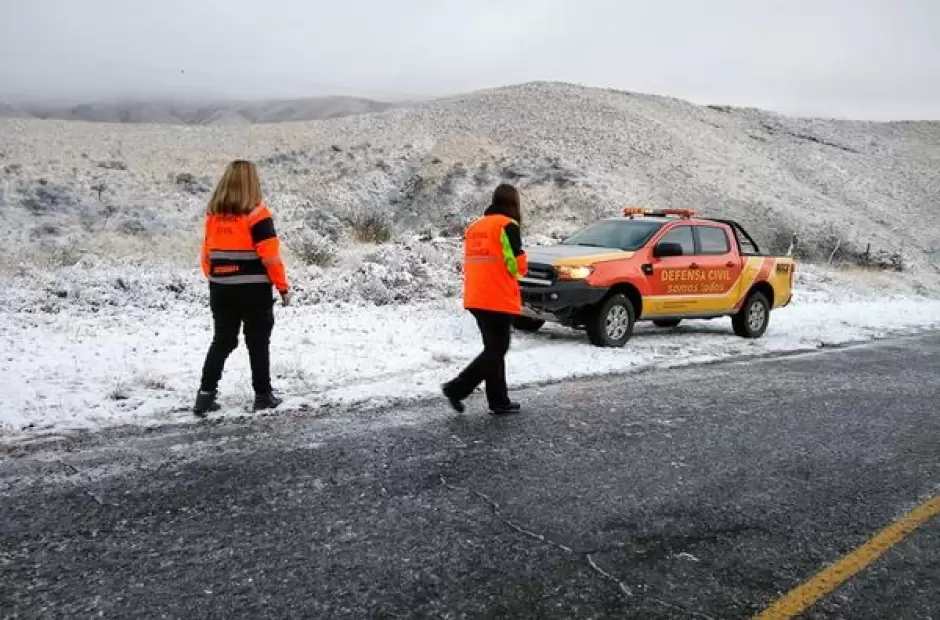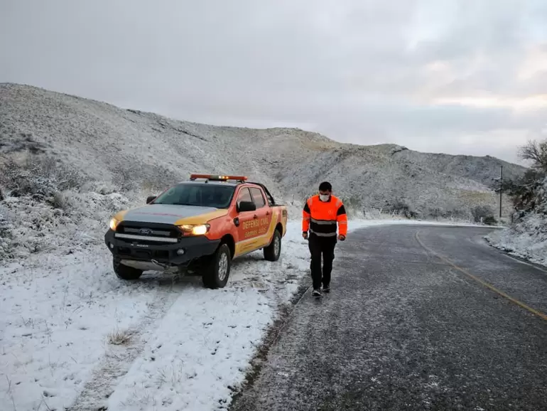 Por la presencia de nieve, neblina y escarcha sobre la cinta asfáltica en algunas rutas, Defensa Civil emitió en la jornada de ayer un alerta para la transitabilidad. "Debido a las bajas temperaturas se solicita a la población extremar las medidas de precaución al circular por rutas y caminos ante la formación de hielo sobre la calzada y baja visibilidad".
