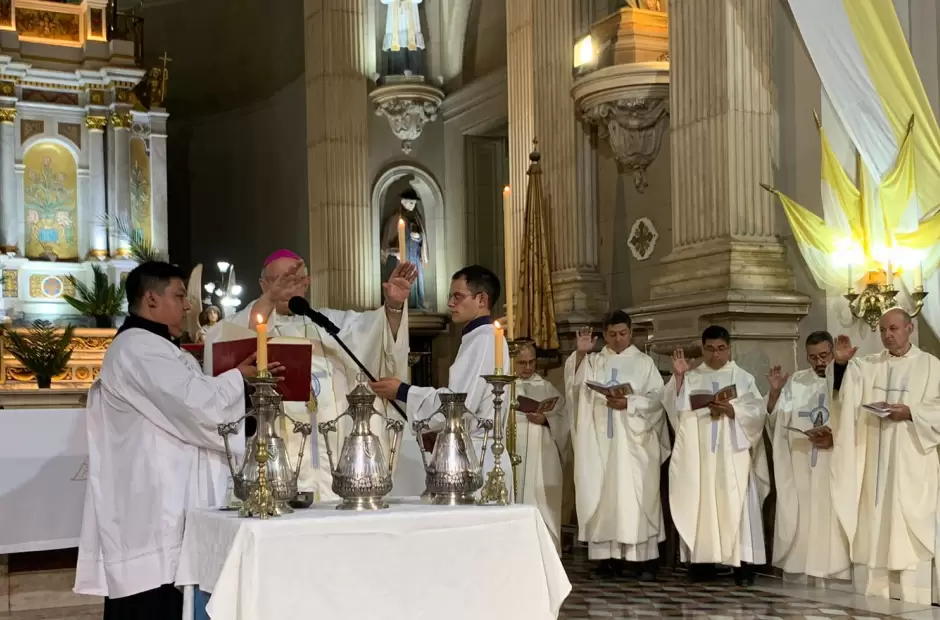 La ceremonia litúrgica, que fue transmitida a través de las redes sociales, reunió a una gran cantidad de fieles que colmaron la catedral Basílica y Santuario mariano, para participar de esta Eucaristía en la que el obispo bendijo los santos óleos y los sacerdotes renovaron las promesas del día de su ordenación.