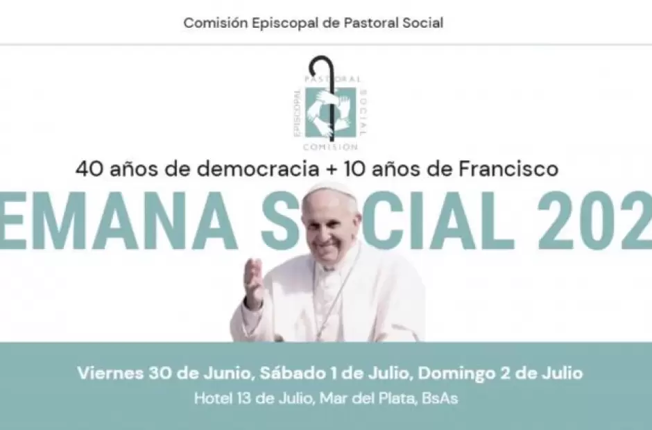 En el marco de los “40 años de Democracia y 10 años de Francisco”, durante la tarde de este viernes 30 de junio, se dará inicio a la Semana Social que culminará el domingo 2 de julio