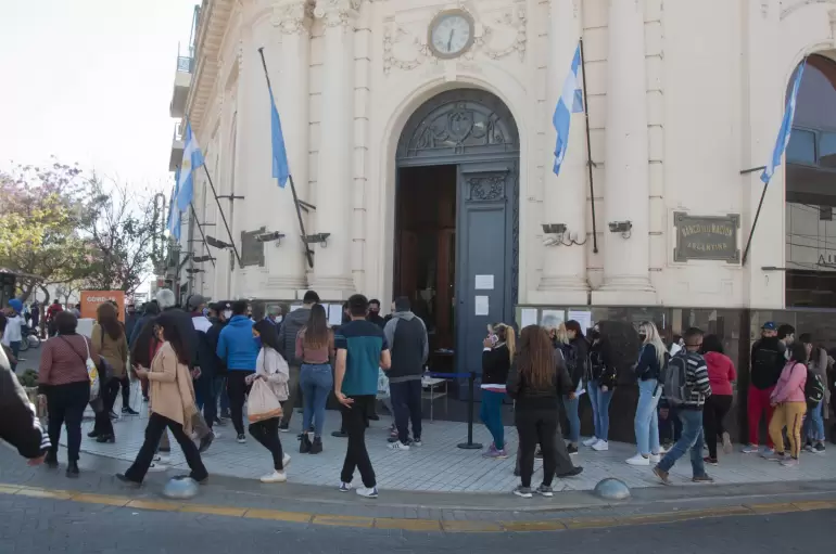La postal en el tercer día, tal vez por ser casi fin de semana, es más complicada que en los días anteriores. Las filas son importantes y el aglomeramiento se repite en las tres sucursales de la entidad bancaria.