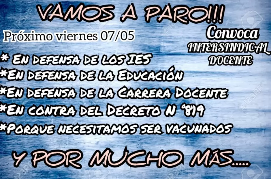 Cinco son los ejes de la convocatoria gremial y girán principalmente en torno a la defensa de los IES, la Educación y la carrera docente. Esto se suma obviamente la postura en contrario por el decreto n° 819 y el reclamo constante por la vacunación de todos los docentes, principalmente los del interior.
