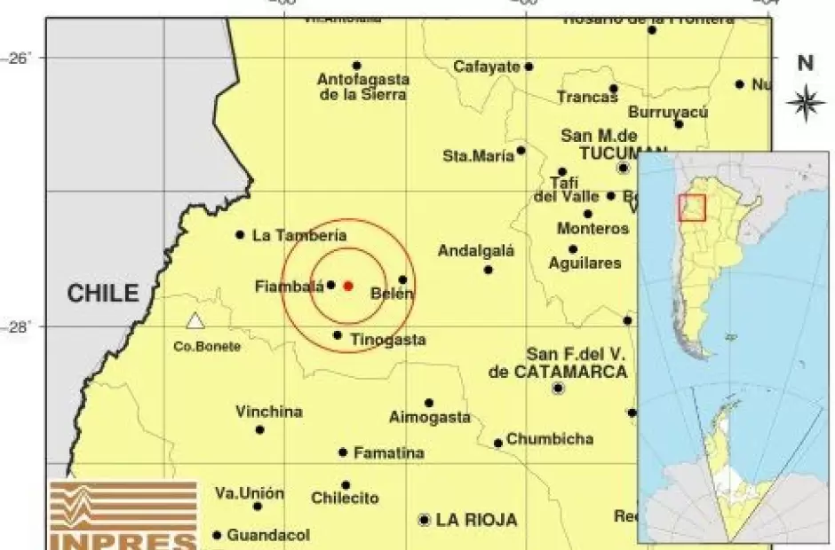 El sismo, según infirmaron se registró a 42 km al N de Tinogasta; 44 km al O de Belén; 98 km al SE de La Tambería y tuvo una profundidad 141 km.