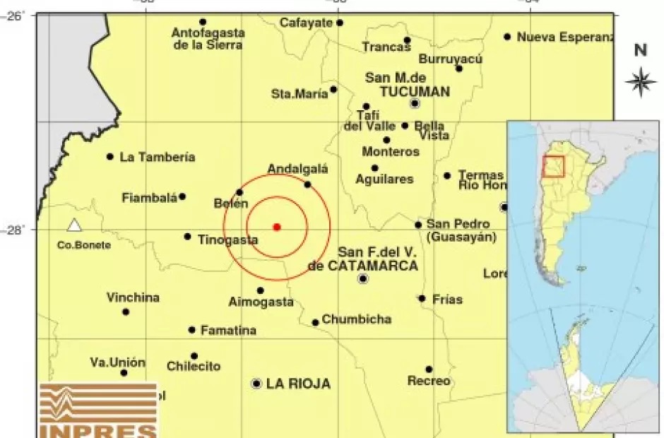 Este ocurrió a la hora 06:55, y tuvo como epicentro a 102 km al NO de San Fernando del Valle De Catamarca; 160 km al Norte de La Rioja; 52 km al SE de Belén. La magnitud del evento fue de 4.4 en la escala de Ritcher con una profundidad: 185 km.
