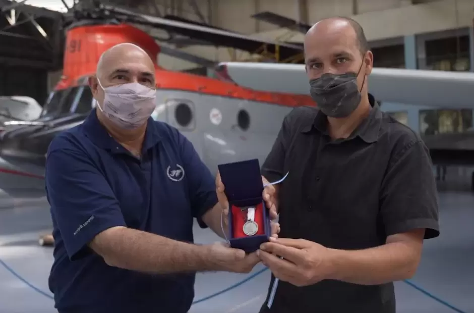 A 40 años del conflicto bélico y gracias a un encuentro que posibilitó TN y la Gente, el joven se acercó a la Base Aérea de Morón para recibir una medalla con su nombre que encontró Alberto Lozauro, un colectivero jubilado que quería entregársela a la familia. “Cuando me entregaron la medalla sentí que estuvo ahí”, aseguró juan Carlos.