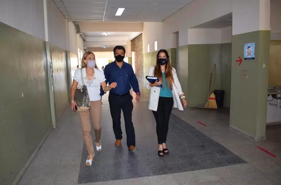 En el contexto de inicio del ciclo lectivo 2021, la directora de educación Secundaria, Patricia Lobo, recorrió las instalaciones de la Escuela Secundaria Nº 77, en la zona sur de la Capital. Acompañaron la visita la supervisora Patricia López Vergara y el vicedirector de la institución Julio Gabriel Vega.