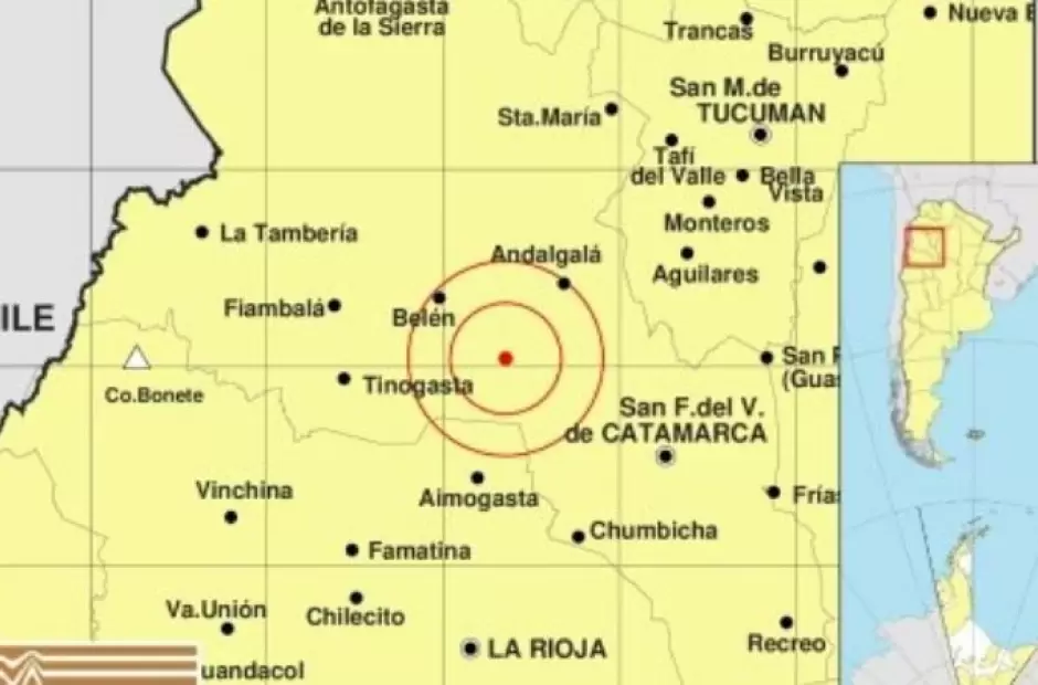 El fenómeno tuvo su epicentro en una zona ubicada a 51 kilómetros al sureste de Belén, a 54 kilómetros al suroeste de Andalgalá y a 69 kilómetros al norte de Aimogasta, lo que explica que haya sido percibido en un radio relativamente amplio.