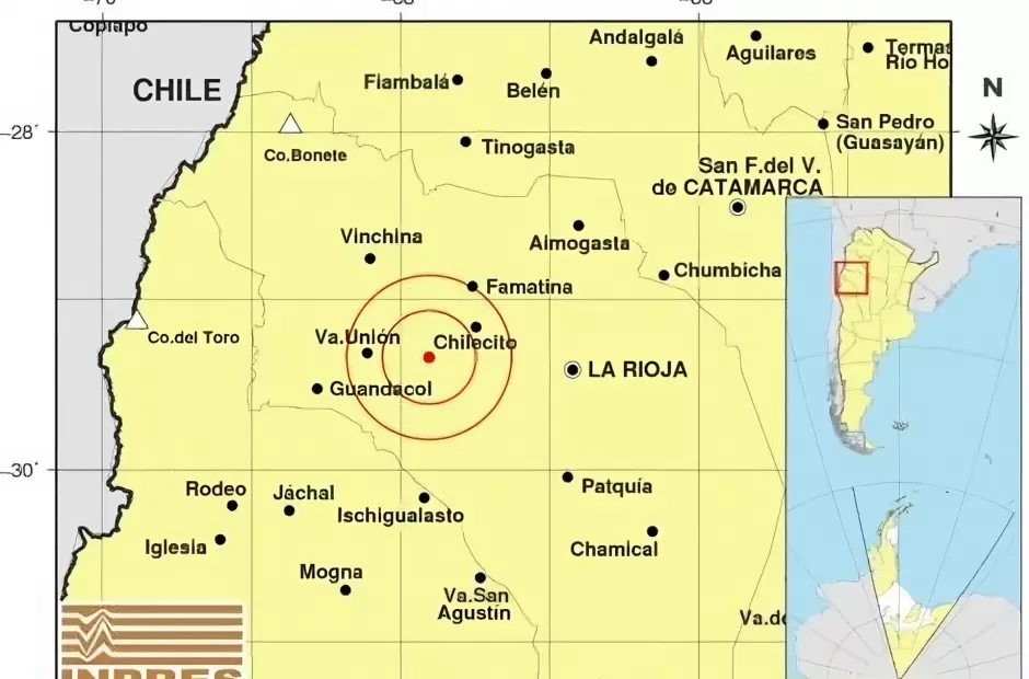 Según el Instituto Nacional de Prevención Sísmica, durante la primera hora de este domingo, aproximadamente a la 01:17 de la madrugada, se registró un sismo con epicentro en la provincia de La Rioja, a 157 km al Oeste, y a 264 km al Oeste de San Fernando del Valle de Catamarca.