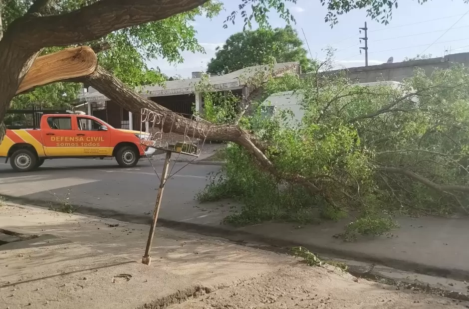Desde Defensa Civil se indicó que sus equipos trabajaron en la reducción de las consecuencias del fuerte viento, realizando tareas de corte y reducción de árboles caídos en diferentes puntos de la Ciudad además de relevamientos habitacionales.