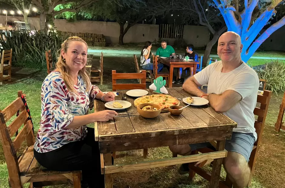 “La verdad que Catamarca tiene atractivos únicos, nos enamoramos de su gente, de la Virgen del Valle, y su naturaleza, de todos los lugares que existen para visitar” señala Leonel, a lo que Natalia agrega: “Nos encantó su cultura, su folklore, cómo lo viven. Sobre todo, ver que en las plazas la gente disfruta hasta la noche con los chicos, tomando mate, la tranquilidad que se vive aquí es única. En este momento, estamos muy contentos de poder disfrutar esta Peña en la Casa de la Puna y ver que se mantiene la identidad de la provincia, sus tradiciones, es hermoso.”
