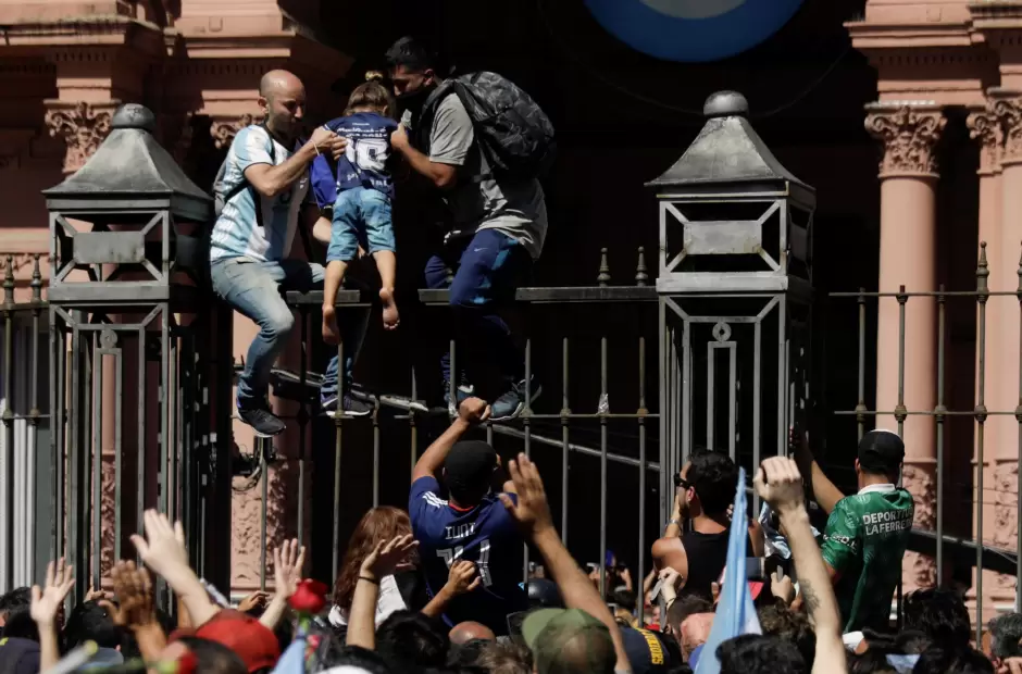 Todo comenzó alrededor de las 14, luego de que la Policía de la Ciudad cerró la fila de ingreso hacia la Casa Rosada en donde se despiden los restos del ícono de la Selección Argentina. Es que la familia de Maradona se negaba a extender el velorio más allá de las 16.
