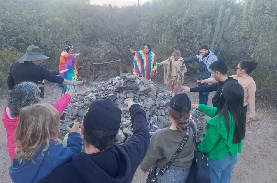 Visitantes de Rosario,Santiago del Estero, Córdoba y Buenos Aires siguieron paso a paso la guía de Carlos Ayosa, historiador  dedicado a rescatar la memoria de los pueblos originarios y exteriorizaron su alegría, interés y emoción durante la particular ceremonia con relatos, plegarias y cantos en quechua, tal cual hace miles de años atrás las comunidades veneraban y agradecían a la Pachamama.