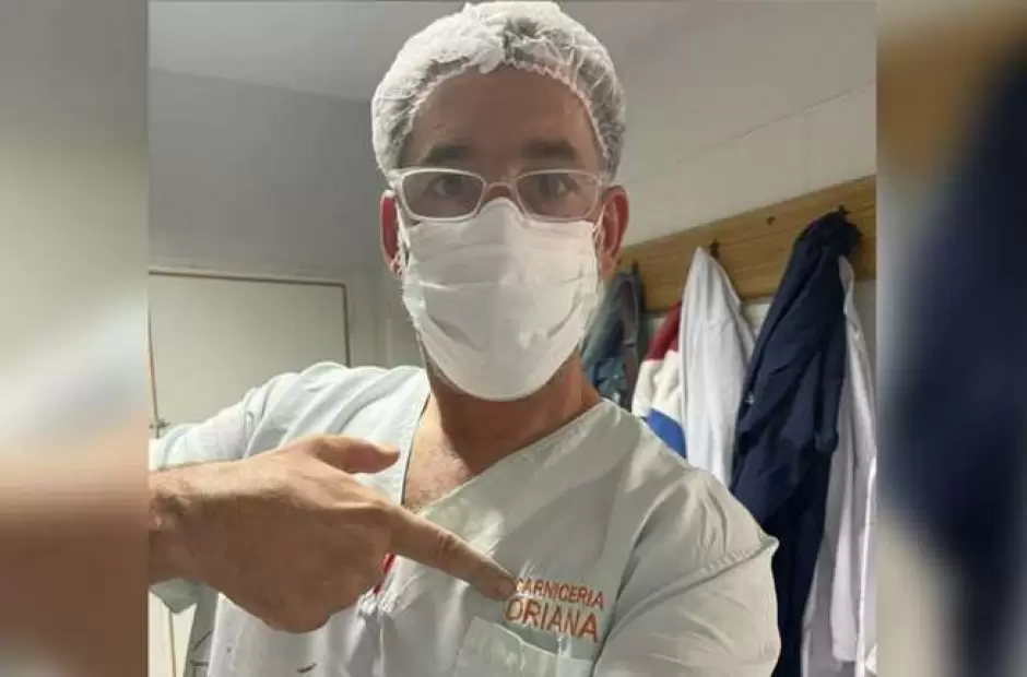 La amplia difusión de la foto está vinculada a un detalle del ambo, también blanco, que lleva la inscripción "quirófano HR" en el frente y bordado en letras naranjas, arriba del bolsillo izquierdo, el nombre de un comercio de la zona: "Carnicería Oriana".