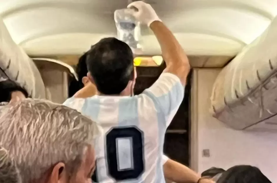 Para sumarle épica a la situación, el hombre -que pidió reservar su identidad porque “cualquier colega haría lo mismo”- vestía una remera de la Selección con un 10 en la espalda, lo cual generó un revuelo entre los pasajeros.