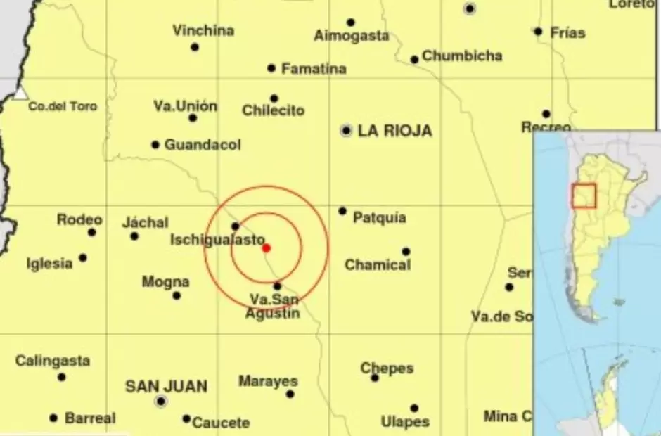 El epicentro se localizó a 122 kilómetros al suroeste de la capital riojana, a 33 kilómetros al norte de Valle Fértil (San Juan), con una profundidad de apenas 10 kilómetros.