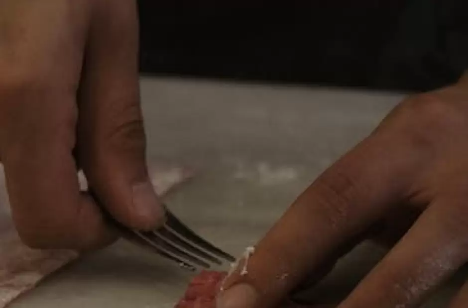 La abuela mostró su fabulosa técnica en un increíble video. Primero, extendió la masa de la pasta sobre una mesa y colocó pequeñas porciones de relleno en filas. Luego, dobló la misma y tapó por completo los bollos de verdura.