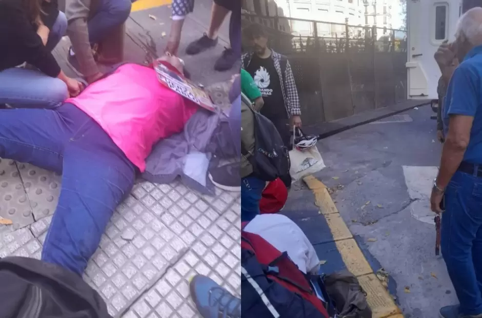 El episodio ocurrió en la esquina de Riobamba y Rivadavia, cuando la mujer intentó empujar una de las vallas metálicas que rodean la Cámara de Diputados y perdió el equilibrio. Fue atendida en el lugar y trasladada en ambulancia para su evaluación médica.
